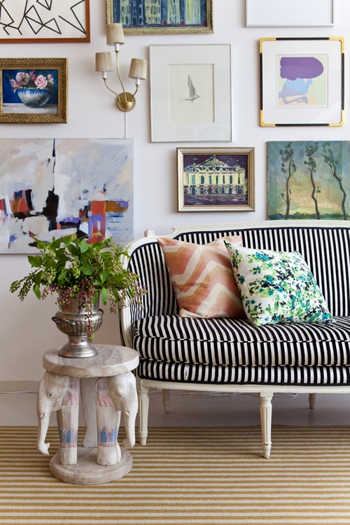 Me han encantado todos los ambientes que has mostrado, aunque debería fijarme más en las composiciones de cuadros, inicialmente se me ha ido la vista a las piezas como la mesita axiliar, el precioso sofá a listas, la telefonera, disculpa, pero voy un poco al revés, también me he dado un minipaseo por el blog, y es muy chulo, pena no tener algo más de tiempo, en todo caso, te sigo….