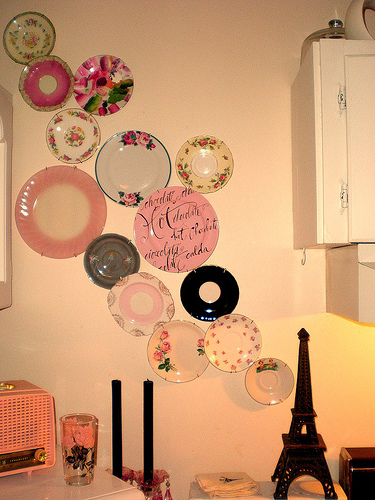 Algunas propuestas que me encantan: / A renewed version of what grandmothers have made already, many many years ago, is to decorate the walls with ceramic or porcelain plates, with different colors and sizes, placed with taste and with order-disorder that we imagined. For a kitchen, a dining room, a hall, a corridor…