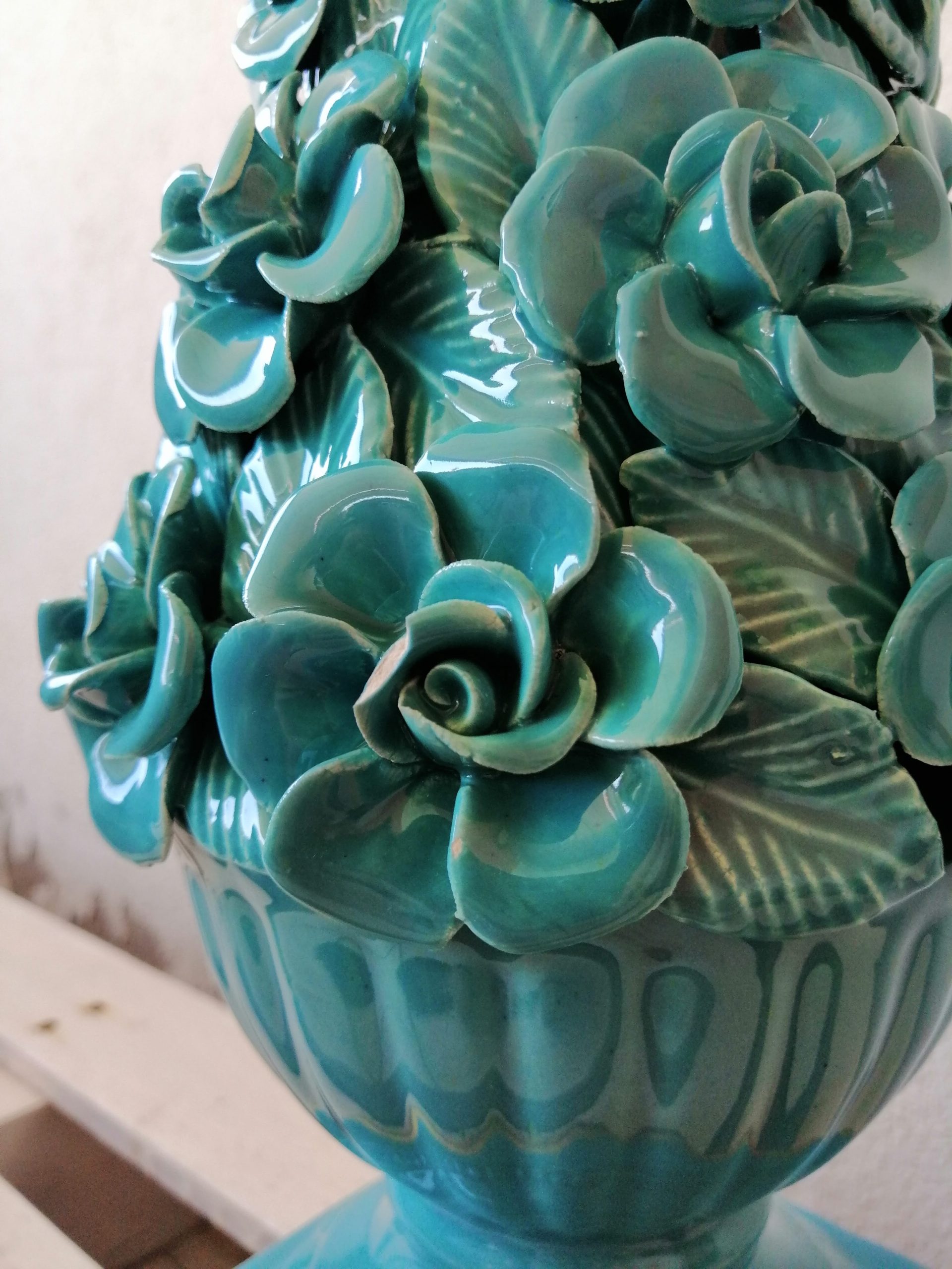 LAMPARA VINTAGE ANTIGUA MANISES PORCELANA CERÁMICA FLORES