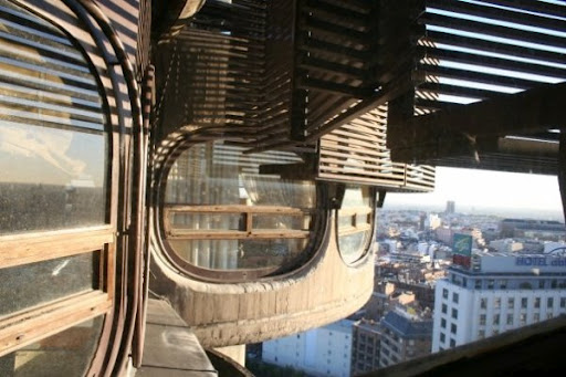 Es uno de los edificios más representativos del particular skylinemadrileño. Un edificio residencial construido durante la década de los 60 que aun hoy mantiene un corte claramente modernista. / It is one of the most representative buildings of the particular skylinemadrileño. A residential building built during the 60’s that even today remains a cut clearlymodernist.