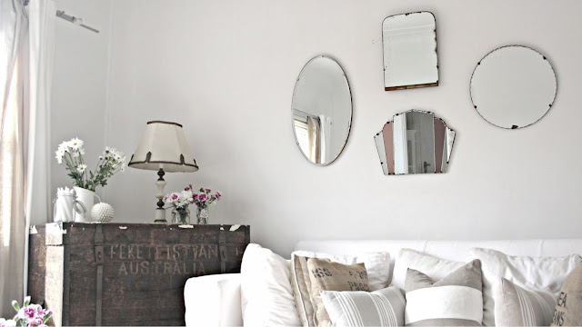 Si adoras los espejos, si no te resistes a pasar delante de uno de ellos y mirarte, si tienes unos cuantos de diferentes tamaños y formas y no sabes que hacer con ellos… pues juntalos!!! En una pared como una composición aparentemente desordenada, y a la vez muy muy meditada, pueden dar un aire muy original a cualquier habitación!!! / If you love the mirrors, if you can’t to pass before one of them and resist look at yourself, if you have a few with different sizes and shapes and do not know what to do with them… then, put them together!!! On a wall as a composition apparently disordered, but very well-thought, can give a very original air to any room!!!!